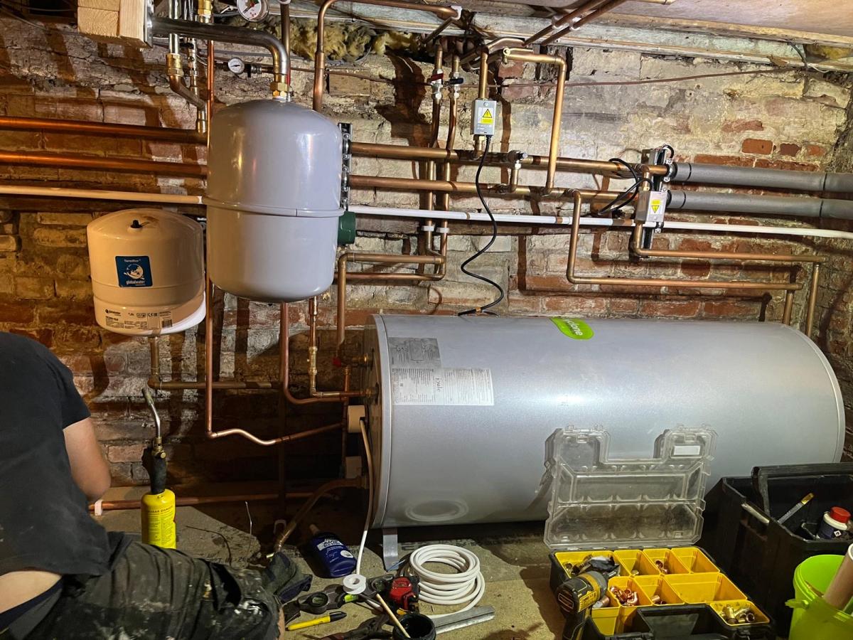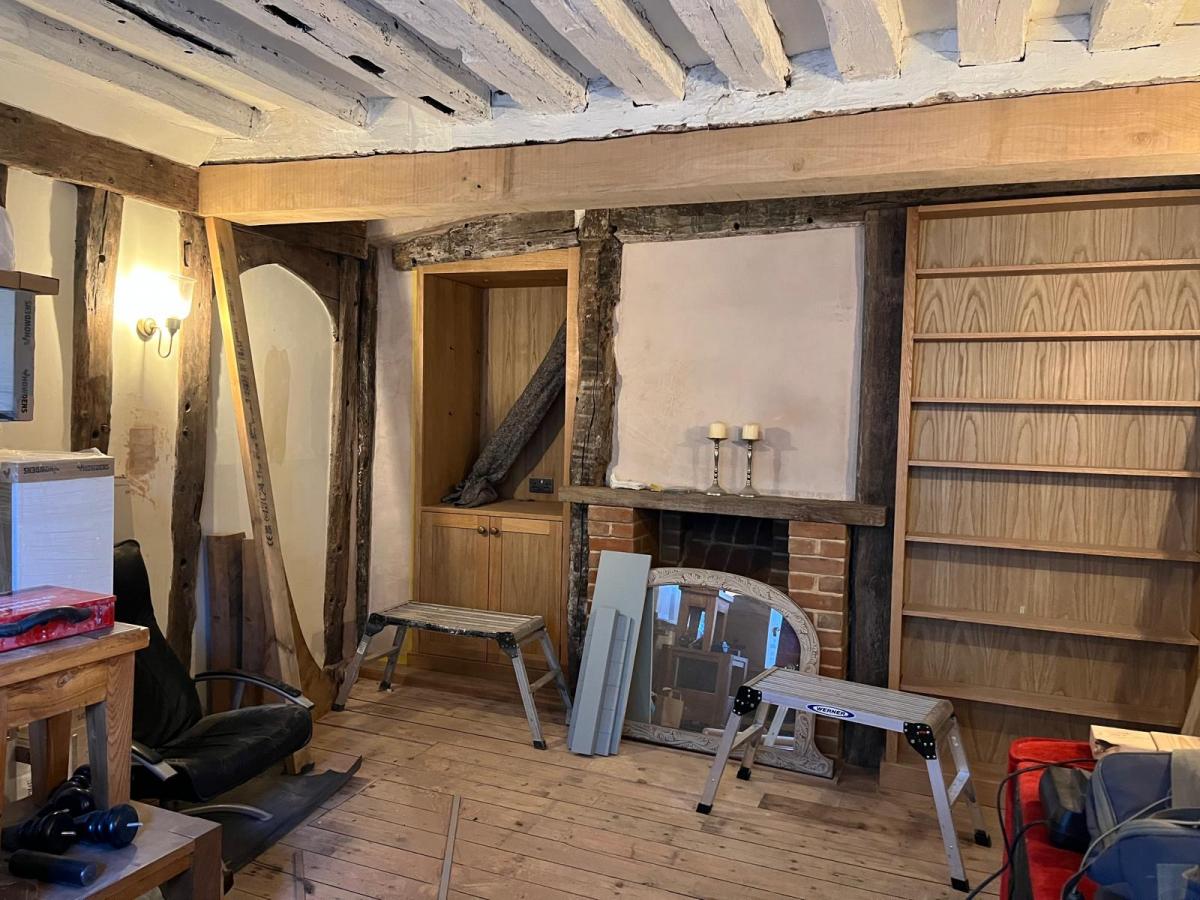 We are working on a new job in Debenham, Suffolk. This week we have installed a new heating system and sump pump into the cellar. We have also made structural repairs to the cellar, and to the sitting room above it. We have altered the height of the original chimney breast beam, and are getting ready for plastering.