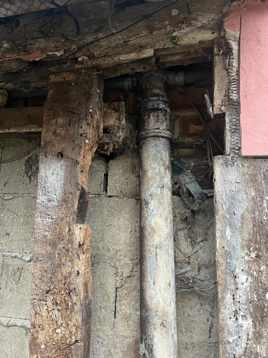 We started a new job in Acton this week. As we often find in this job, incorrect materials have been used previously on this property which has resulted in damp and has also affected the structural integrity of the building. We Will need to carry out some oak repairs, brick replacement and lime plastering.