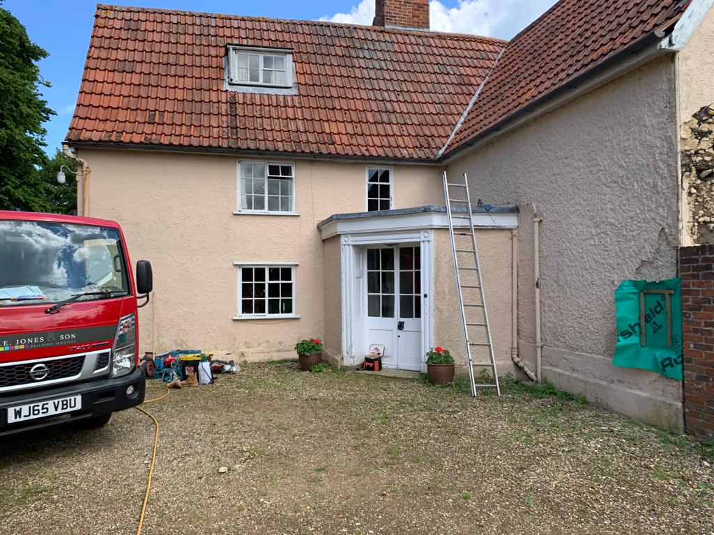 This week we started a new job in Holton-St-Mary. We will be removing the rough-cast render, replacing casement windows and box sash windows. The property also requires repairs to the timbers, and then lime plastering and decorating. We will keep ypu updated on our progress over the coming weeks.