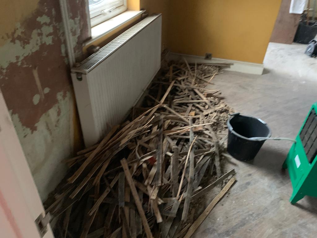 This week we have been called in to strip out a property in Great Cornard after a water tank burst in the loft, causing extensive damage. We will need to remove ceilings, make all the electrics safe, remove all the wet plaster, skirting boards and affected doors and flooring, and allow everything to dry out. Pictures below show the extent of the damage, and we will update you as we progress with repairs.