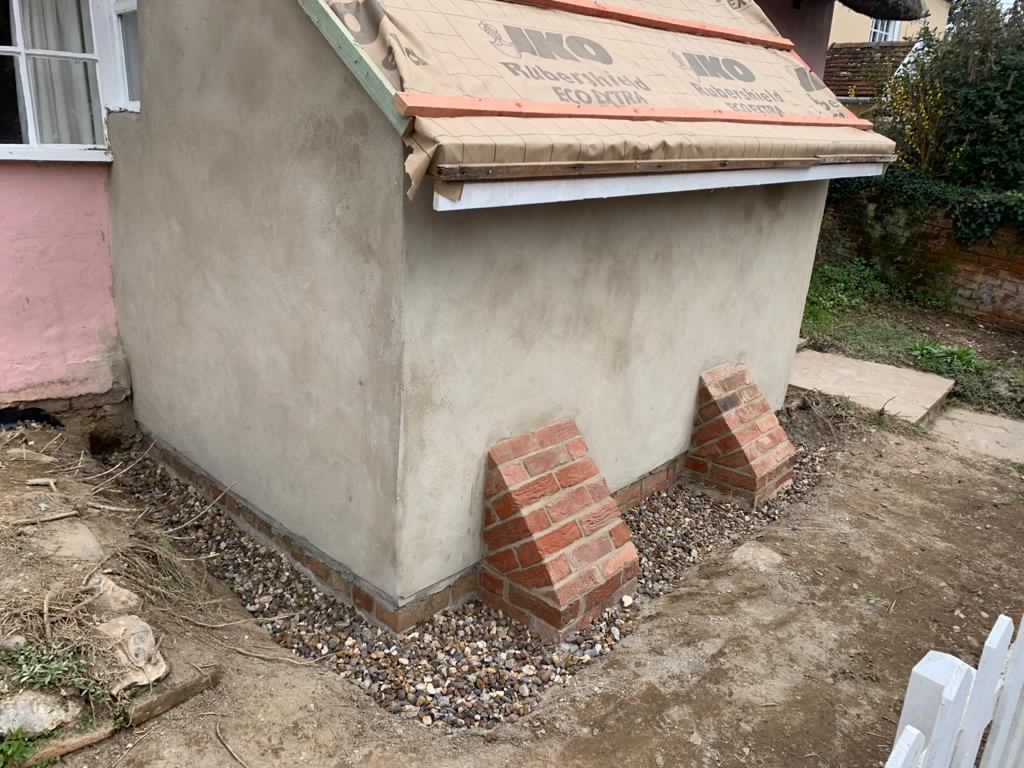 We had another busy week last week. As well as preparing the base for our conservatory build in Newton, we also rebuilt a lean-to at another property in the village.