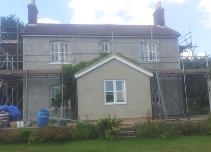 We renovated this property in Edwardstone by removing the rough cast render. We installed new purpose-made windows, and then applied lime-based render before decorating.