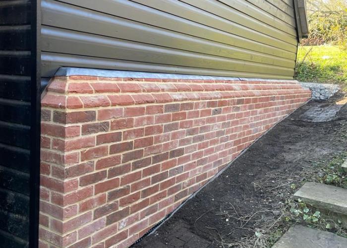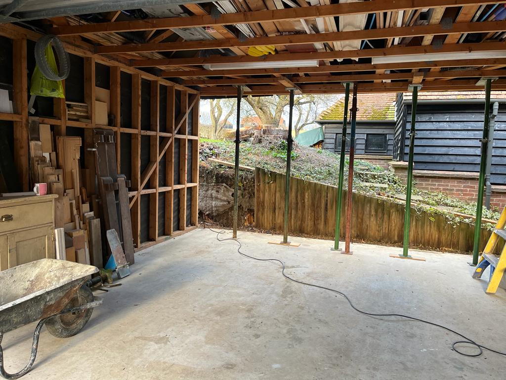 Retaining a garage and outbuilding in Nayland that were affected by movement. We installed retaining walls, gabions, block work and metal rods.