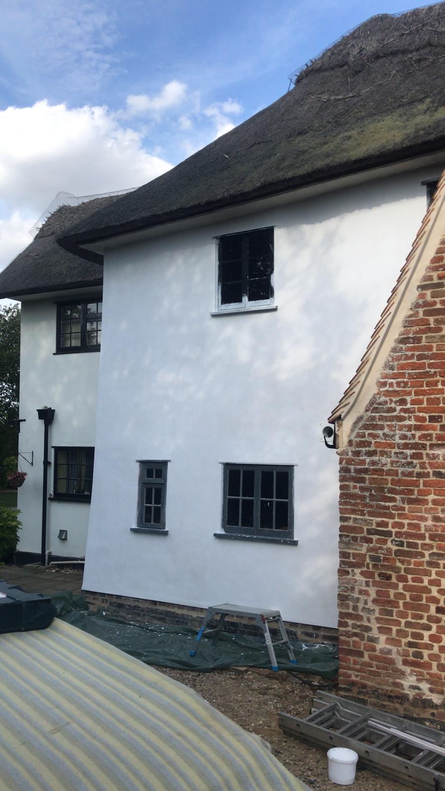 This grade 2 listed building was restored to it's former glory following serious structural problems caused by previous owners having the walls rendered with concrete. We had to strip it back and then preserve the timber frame structure and wattle and daub. This involved inserting new sole plates and reinforcing the timber frame in a bespoke steel brace constructed by a local engineering firm. The customer was very happy with the result, and we even managed to preserve the jesters!