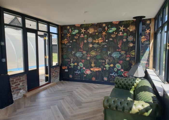 We built a pub in the garden of a property in Nayland. We've had a fantastic response to pictures shared on our social media, and lots of interest in the lovely wallpaper that the clients chose!