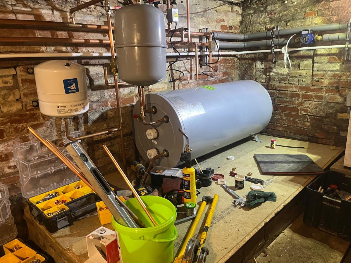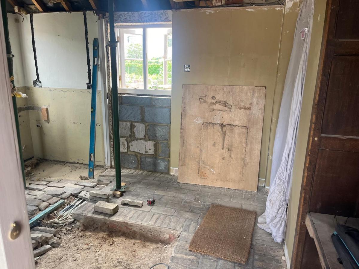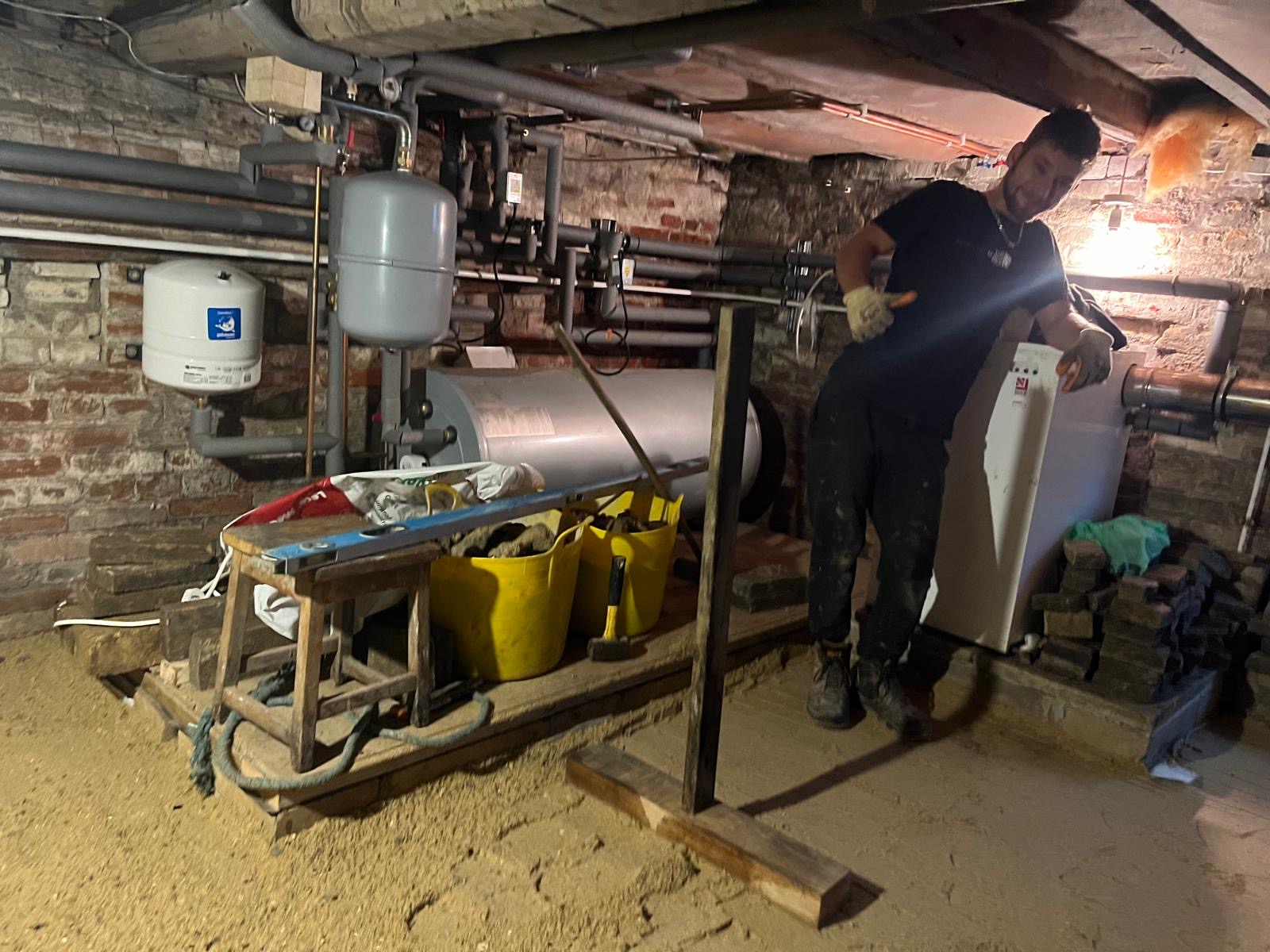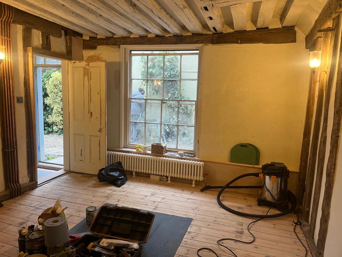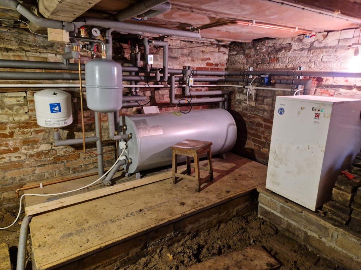 We are working on a new job in Debenham, Suffolk. This week we have installed a new heating system and sump pump into the cellar. We have also made structural repairs to the cellar, and to the sitting room above it. We have altered the height of the original chimney breast beam, and are getting ready for plastering.