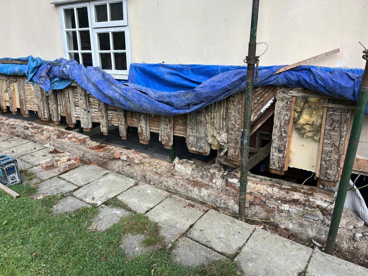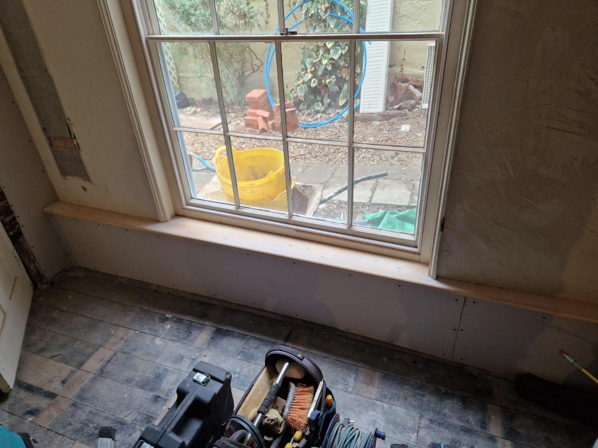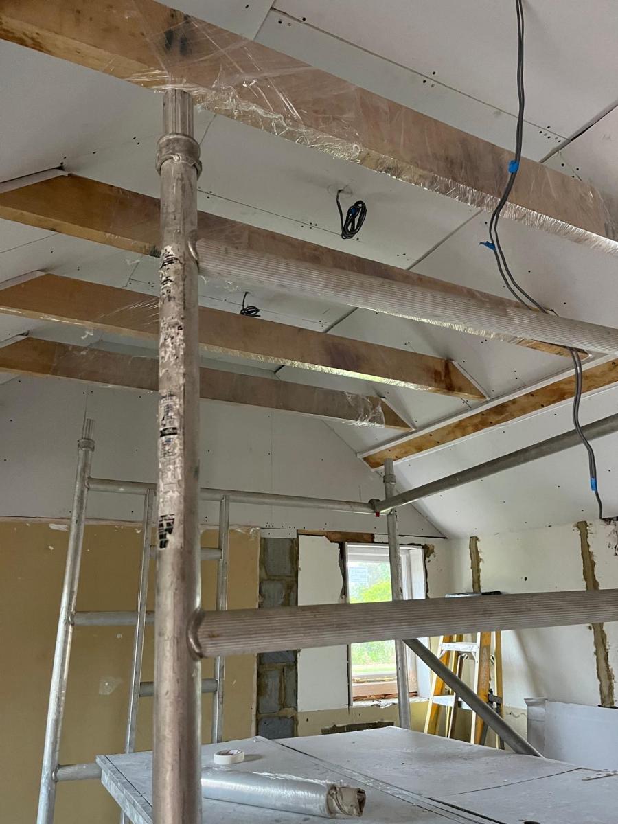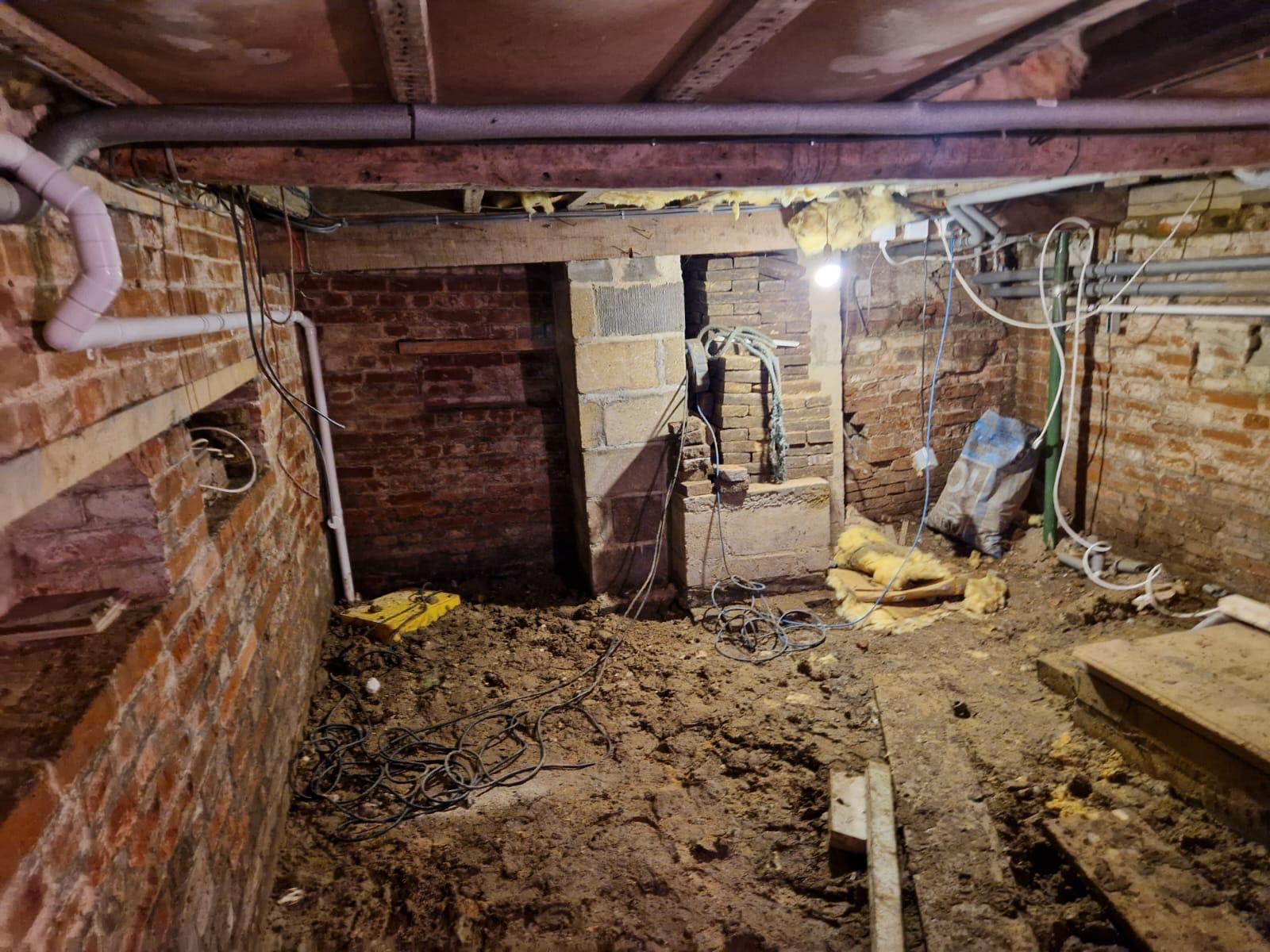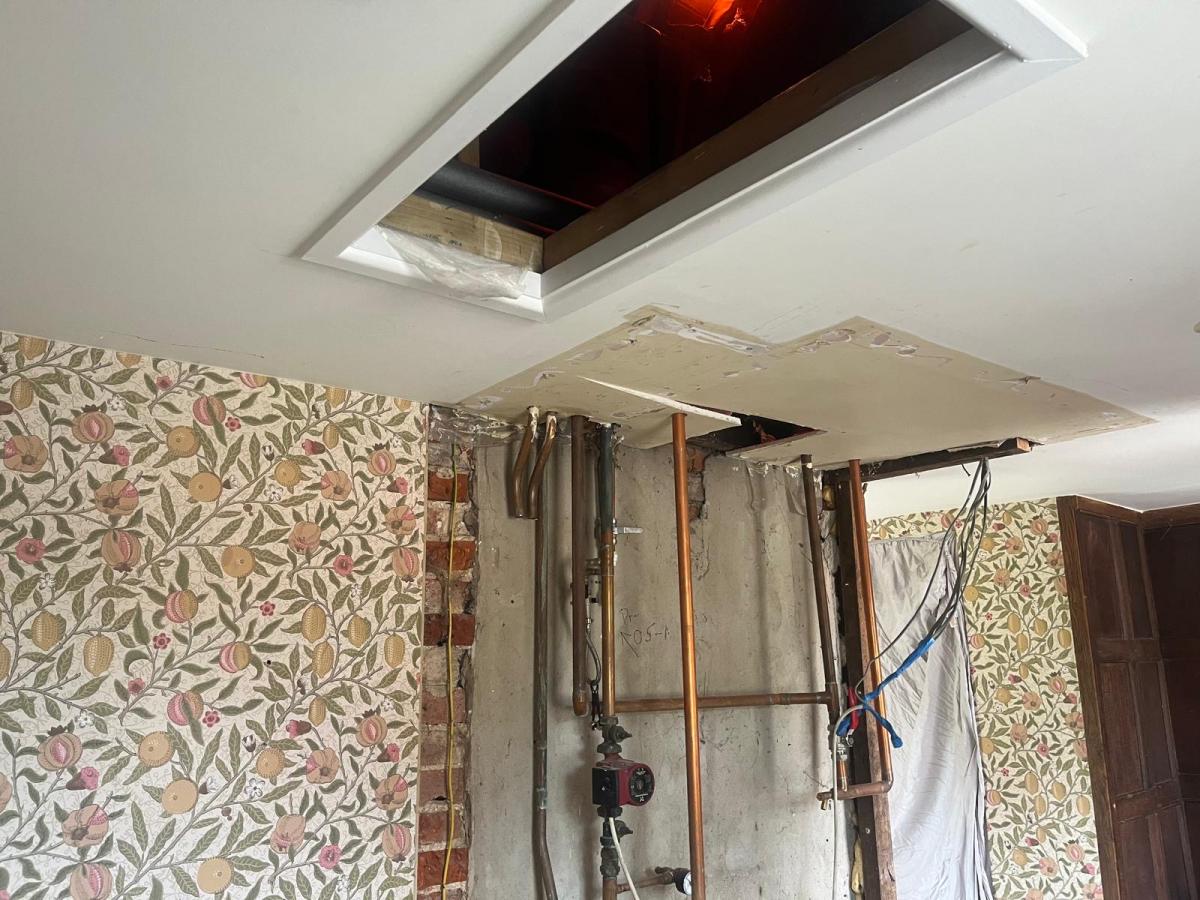 We are working on a new job in Debenham, Suffolk. This week we have installed a new heating system and sump pump into the cellar. We have also made structural repairs to the cellar, and to the sitting room above it. We have altered the height of the original chimney breast beam, and are getting ready for plastering.