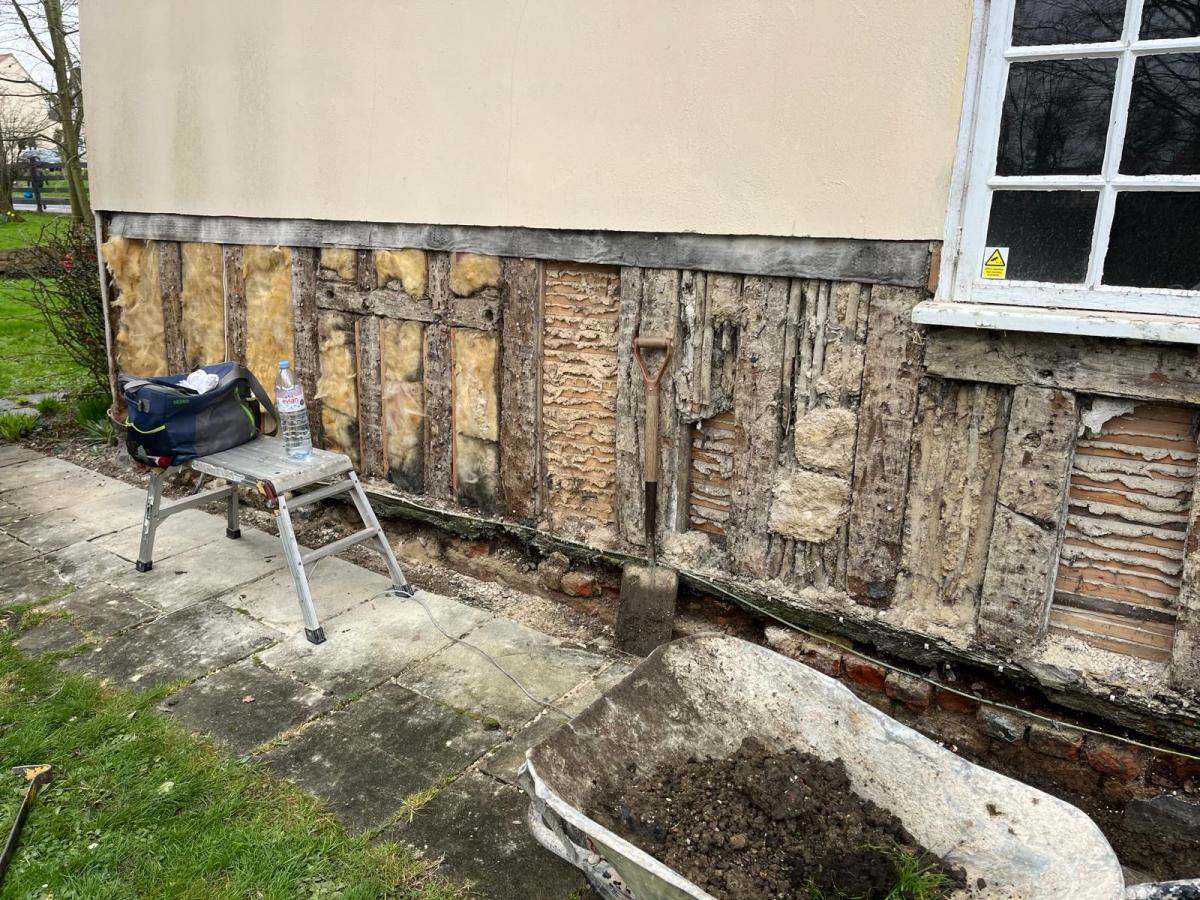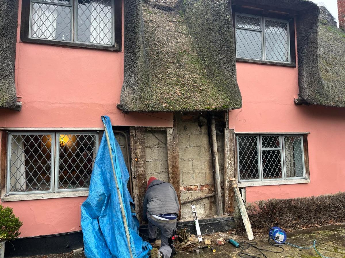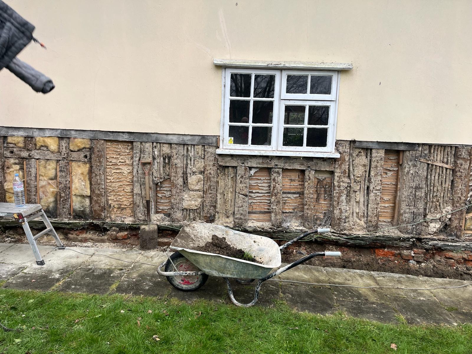 We started a new job in Acton this week. As we often find in this job, incorrect materials have been used previously on this property which has resulted in damp and has also affected the structural integrity of the building. We Will need to carry out some oak repairs, brick replacement and lime plastering.
