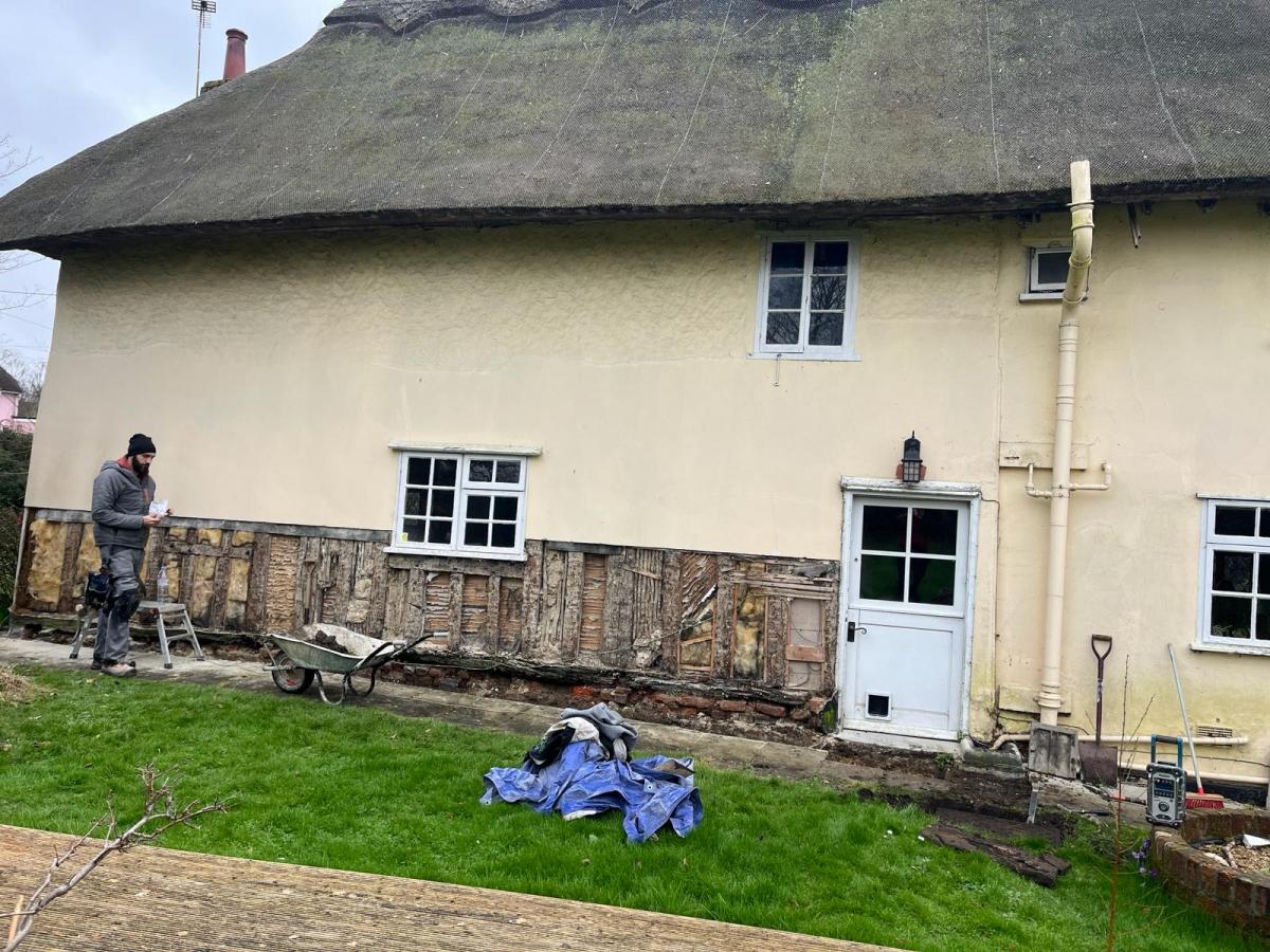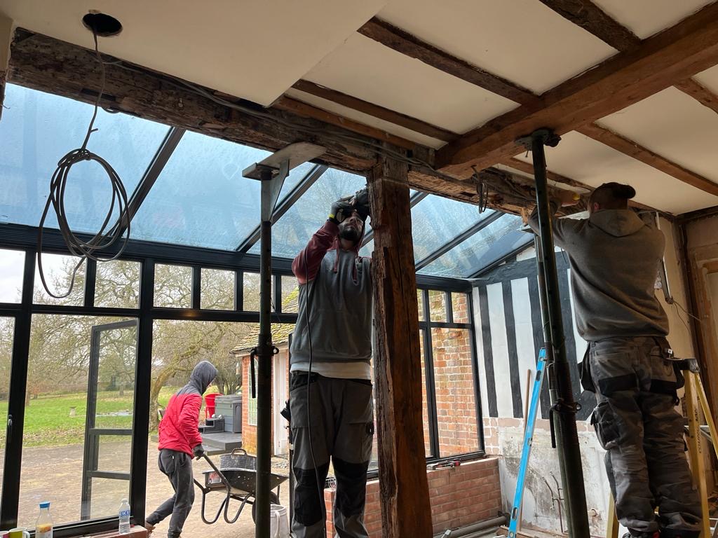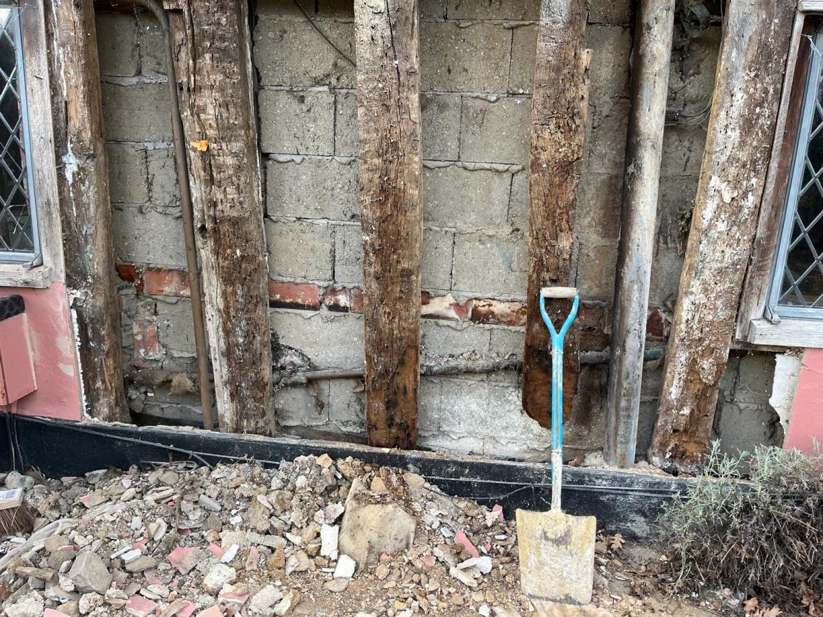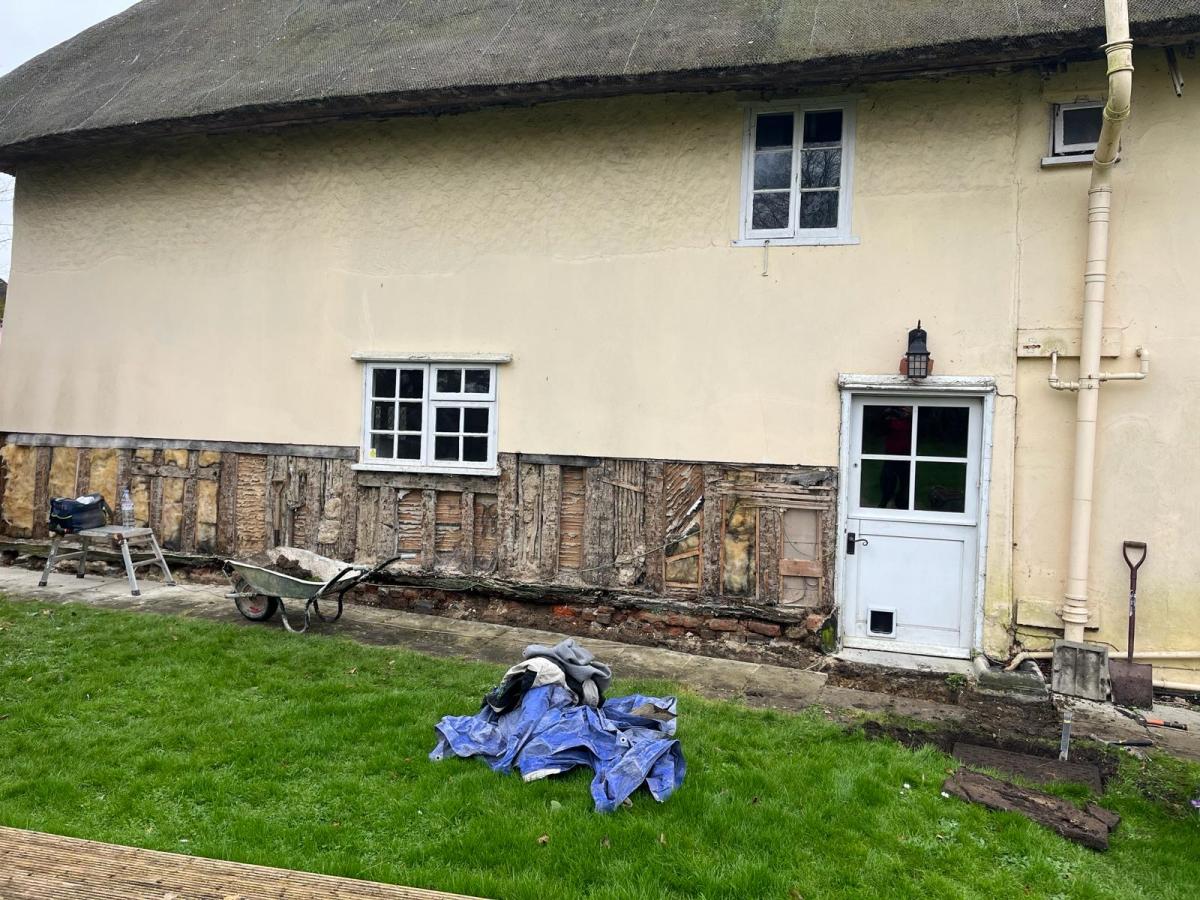 We started a new job in Acton this week. As we often find in this job, incorrect materials have been used previously on this property which has resulted in damp and has also affected the structural integrity of the building. We Will need to carry out some oak repairs, brick replacement and lime plastering.