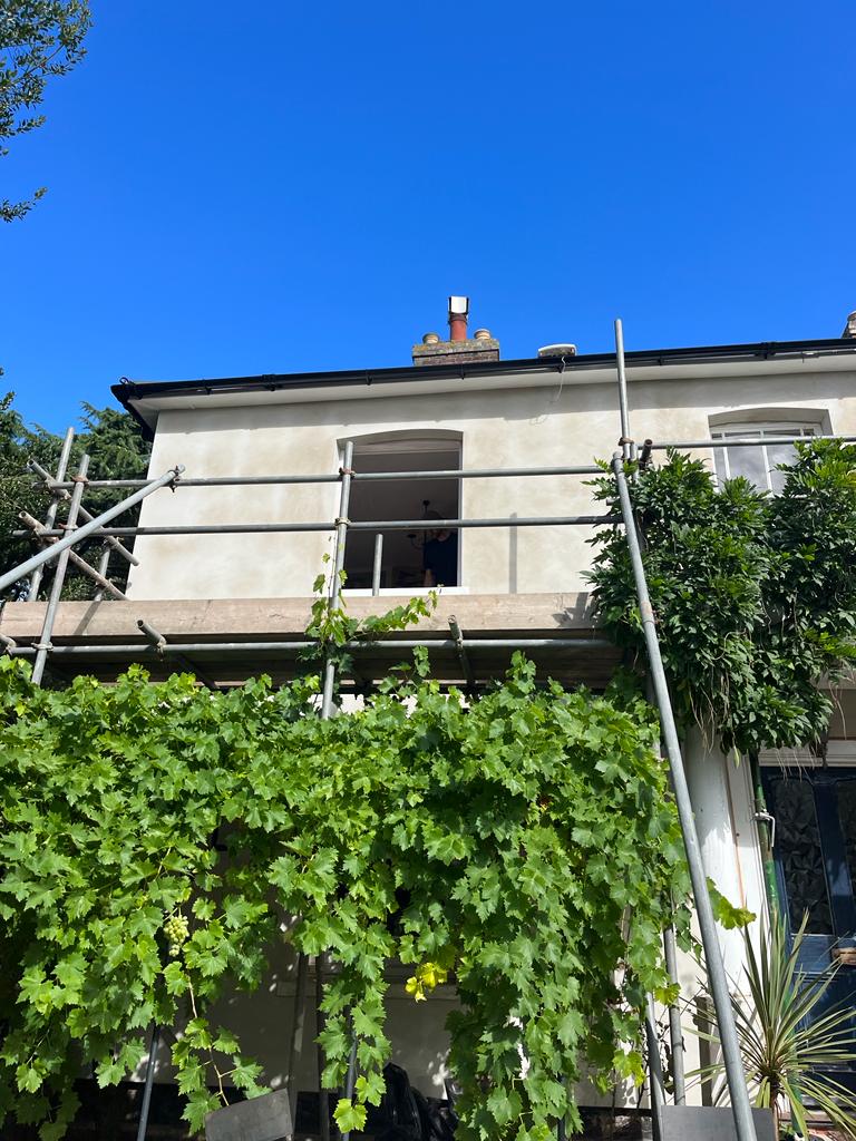Another busy week - in Long Melford the render has been removed and stainless EML (expanded metal lath) is being fixed. This is followed by application of SBR (styrene butadiene rubber latex) which is a bonding agent.