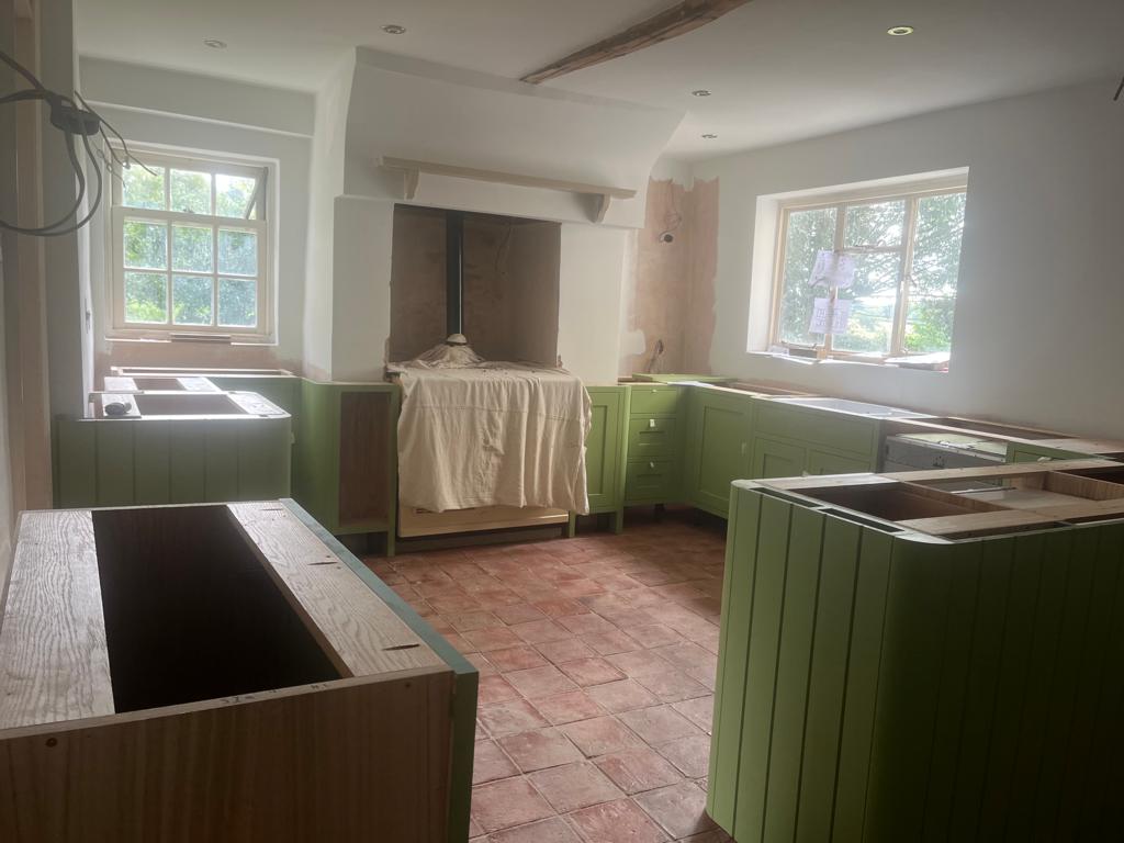 Its been a busy week at Layham. We have been installing a fabulous new kitchen from Churchill Brothers which is now almost finished. We have also fitted a French drain to the exterior of the property which will prevent ground and surface water from entering and damaging the foundations of the property.