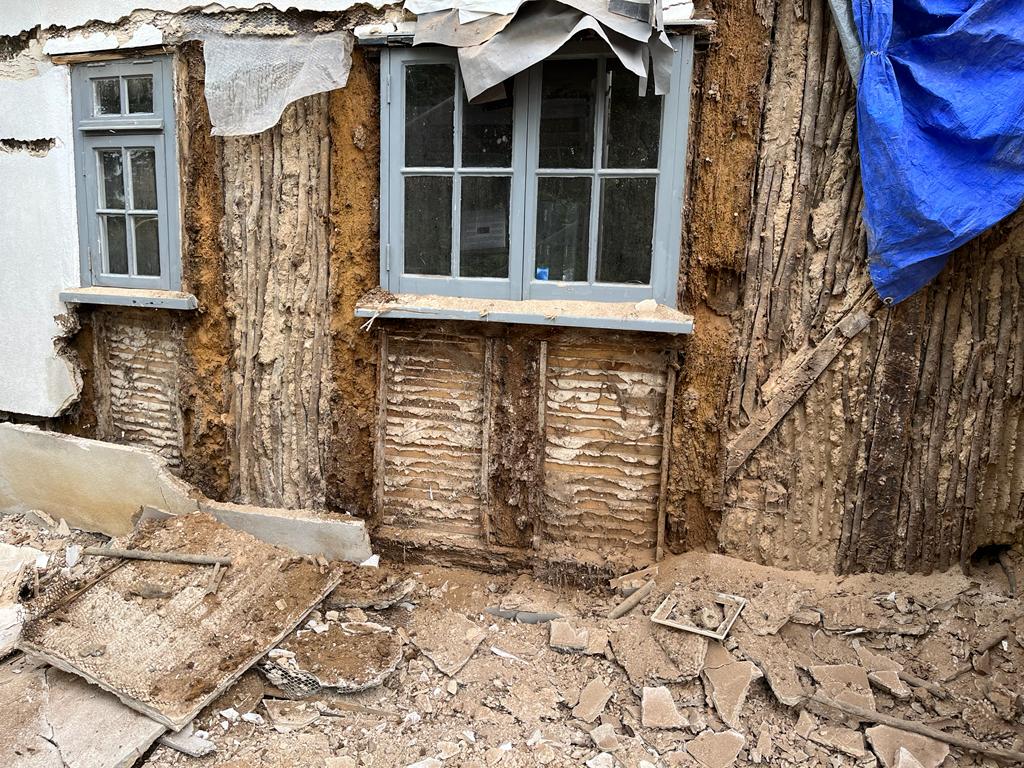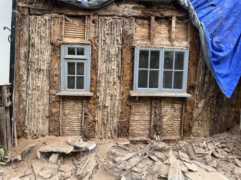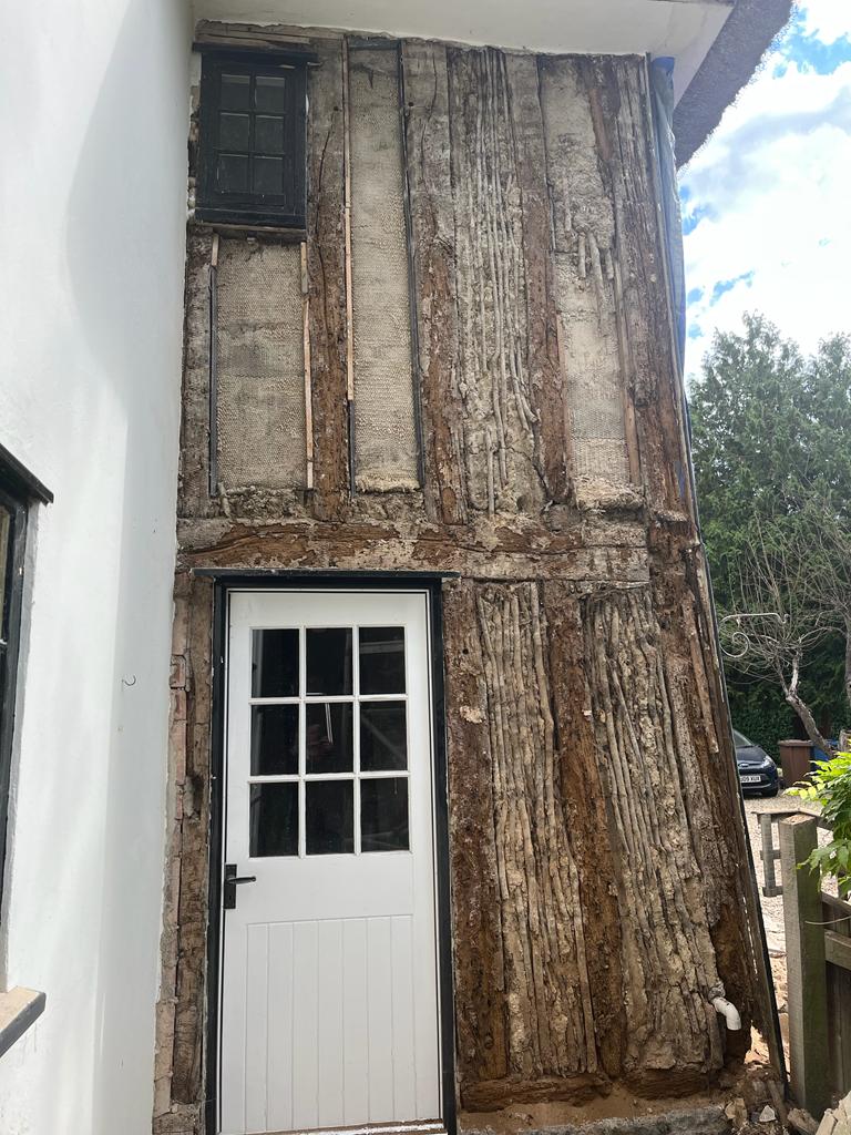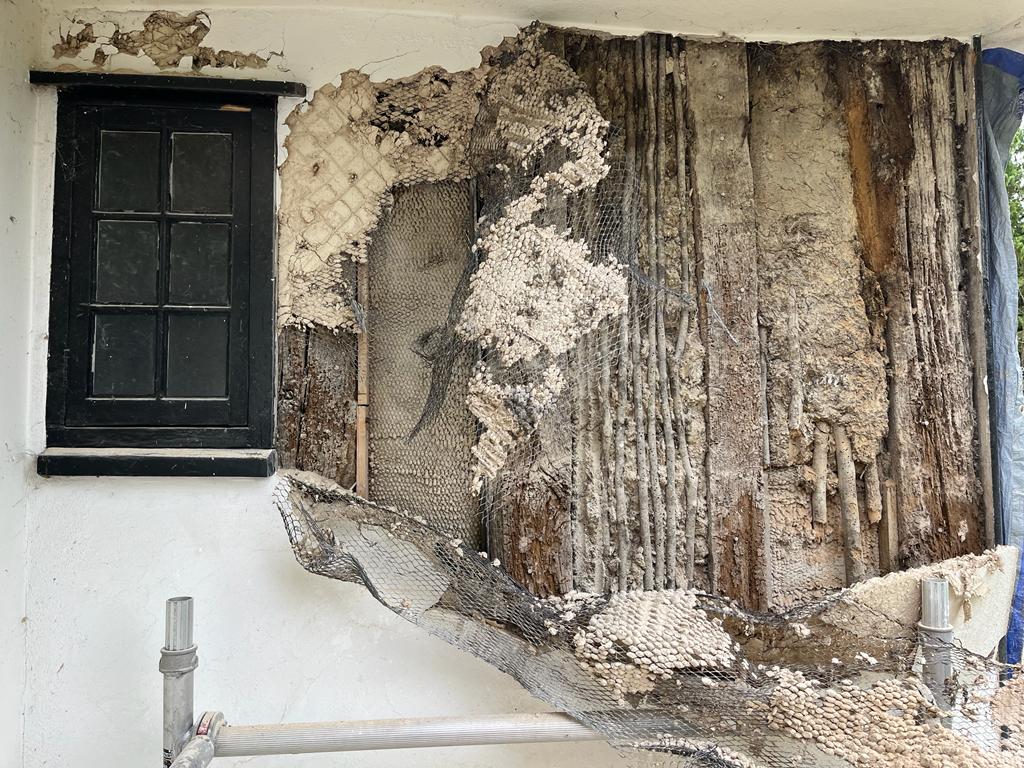 We will be doing more timber, lime, and wattle and daub repairs. We have started to expose the timber frame.