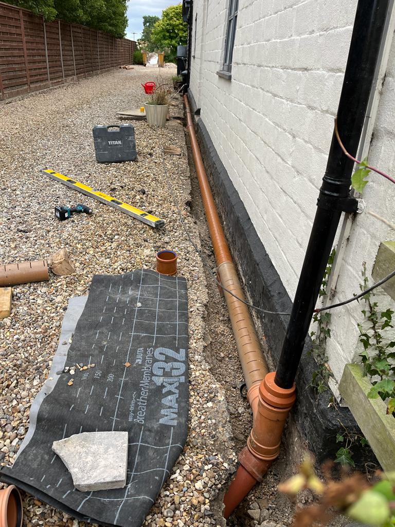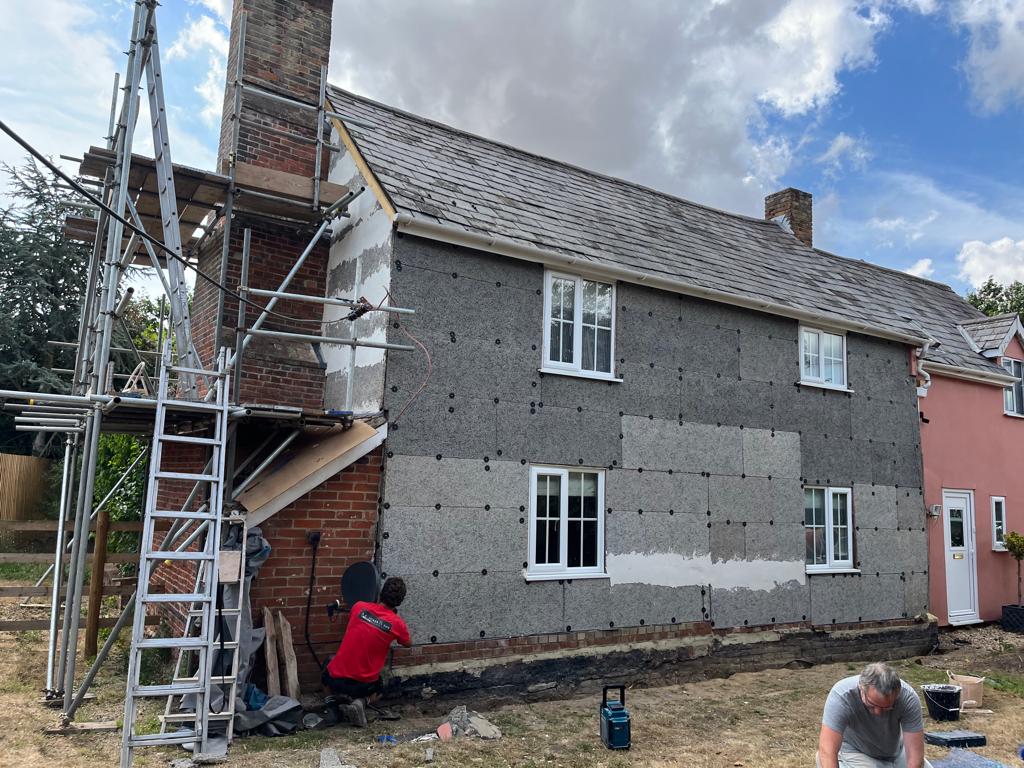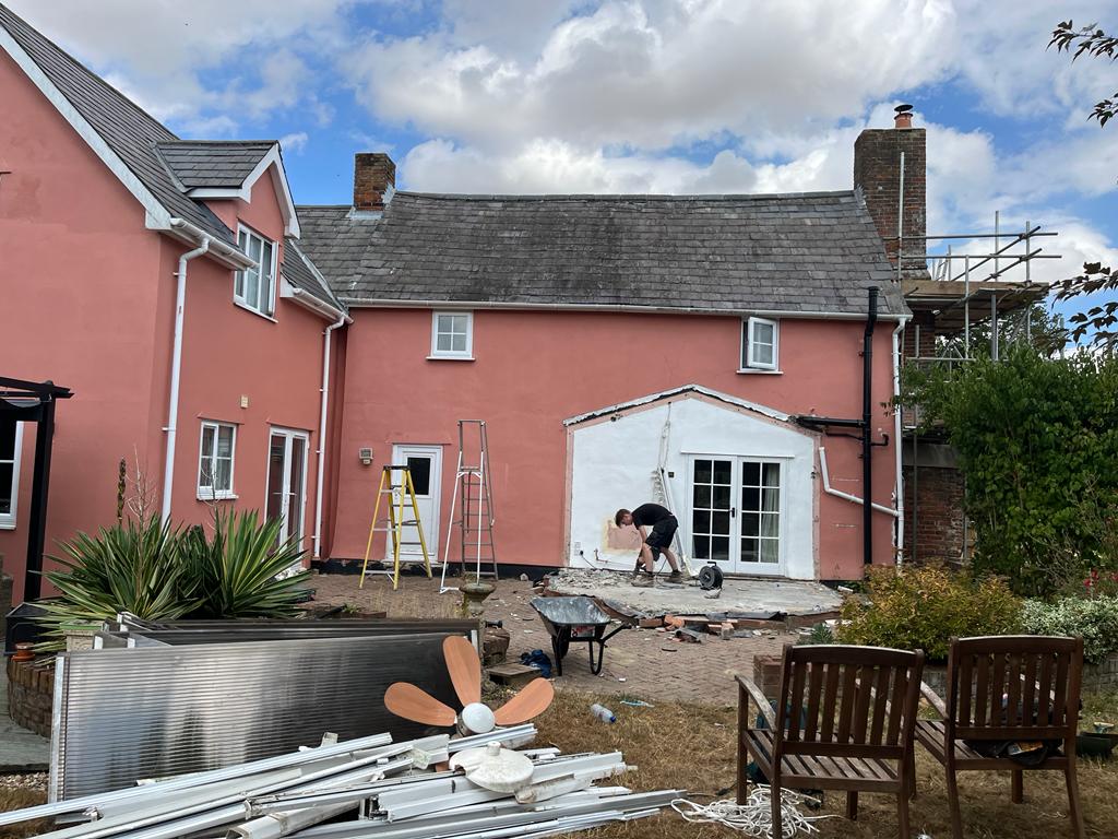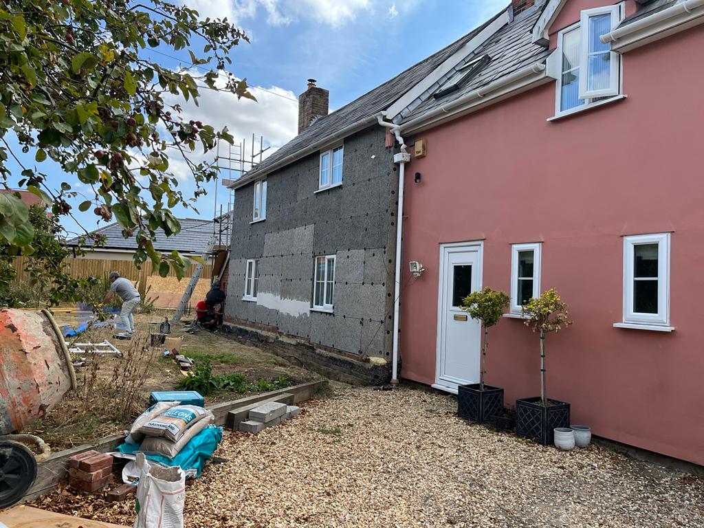 Work is coming along nicely at one of our Newton Green sites. We are prepping for the extension and also getting the front ready for lime plastering.