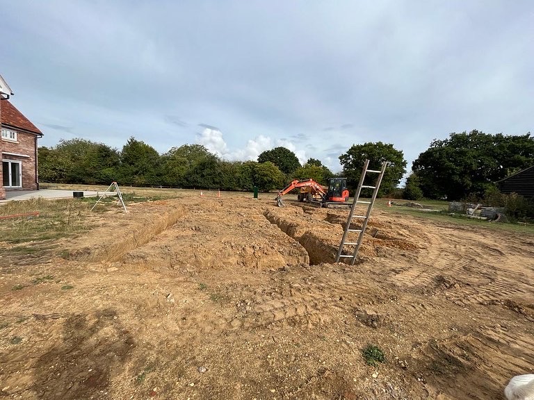 Plot 2 at Newton is progressing well. We have completed the foundations and the block beams. Block beam foundations are great for noise reduction, and they are also a good way of making properties more fire-resistant. They are also suitable for underfloor heating systems.