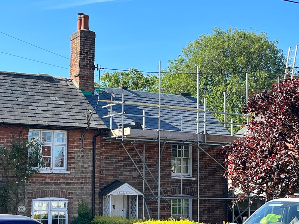We are carrying out a complete overhaul of a Victorian cottage in Little Waldingfield. We will be fitting new slates, lead work and installing a GRP valley. A GRP valley is a cost-effective alternative to lead. They are made of glass-reinforced plastic, making them lightweight and flexible. They allow the safe run-off of water into the guttering.