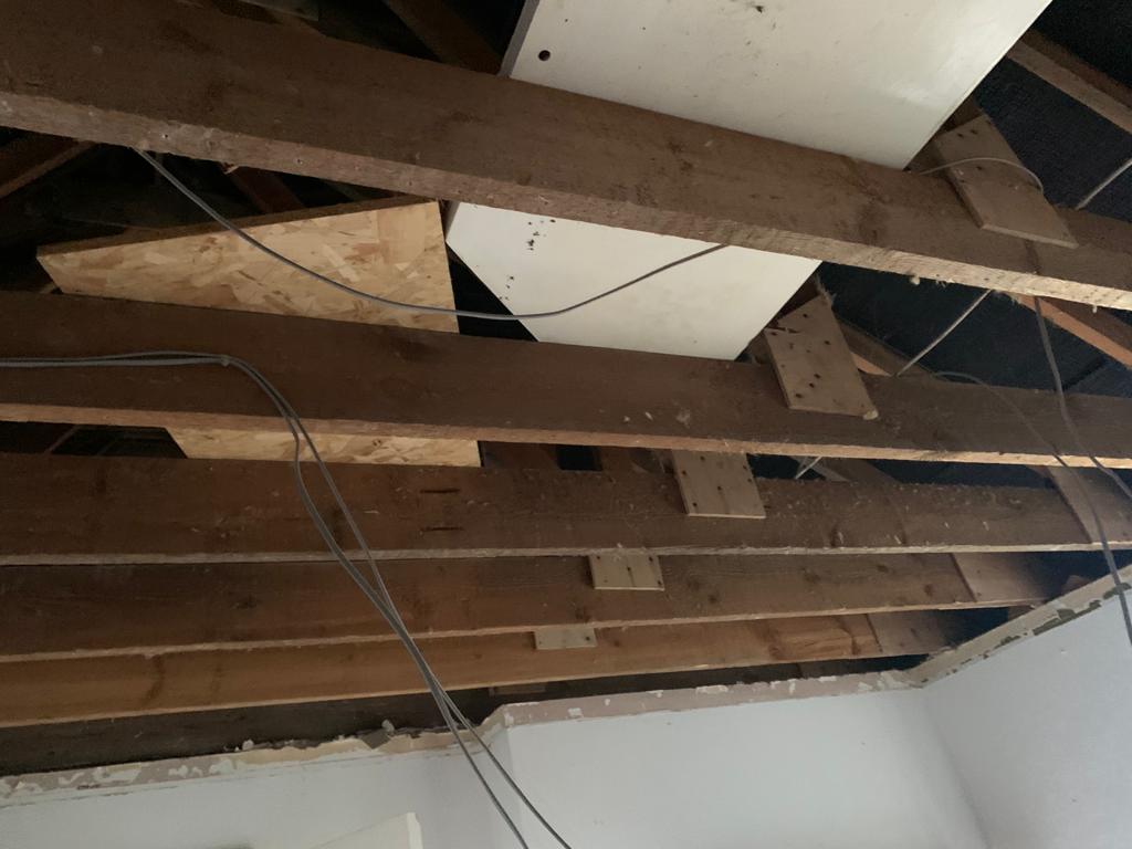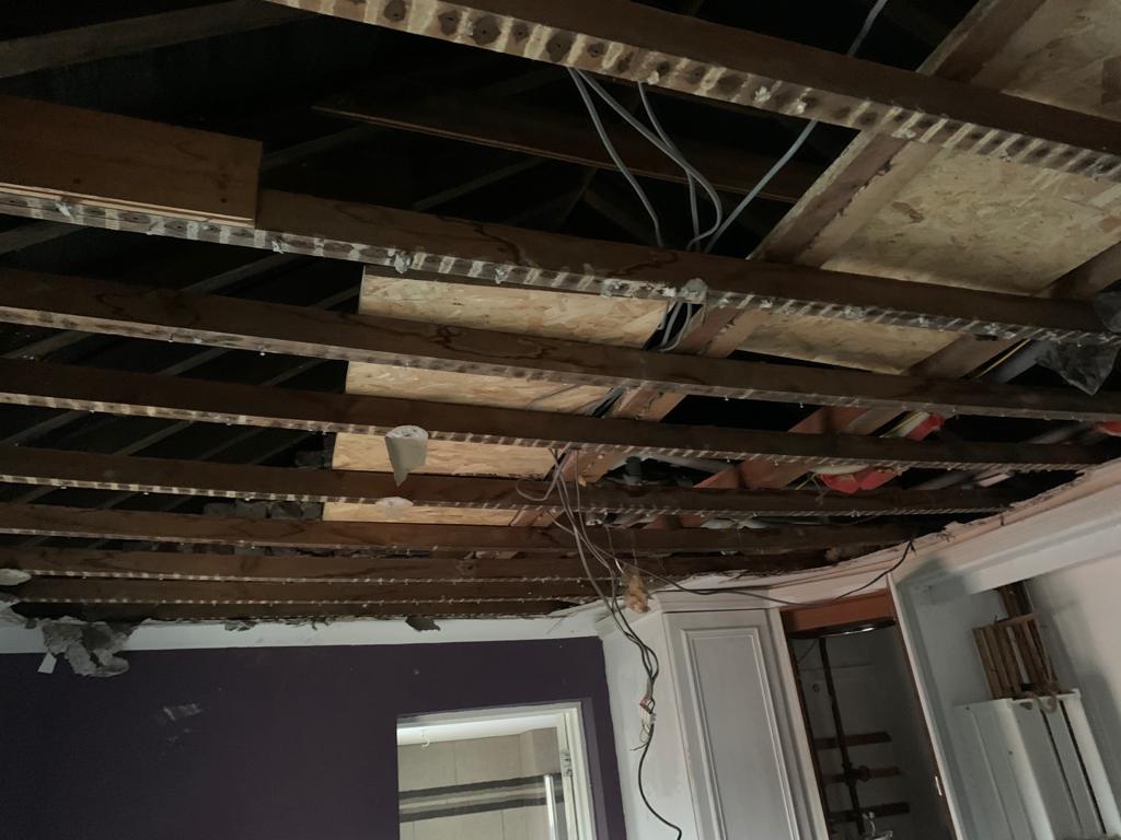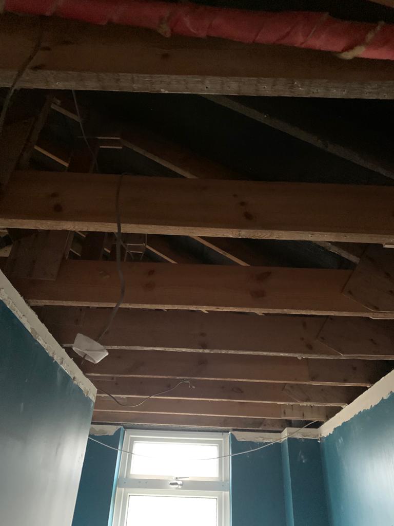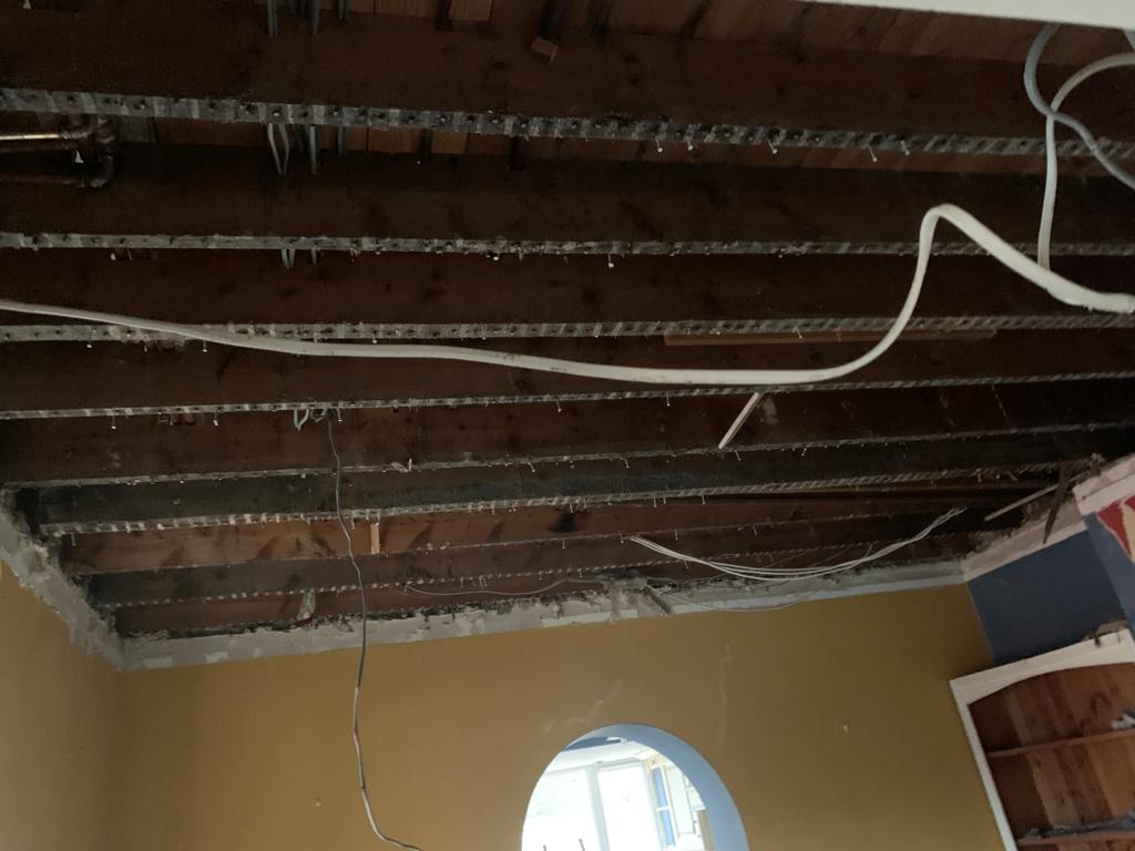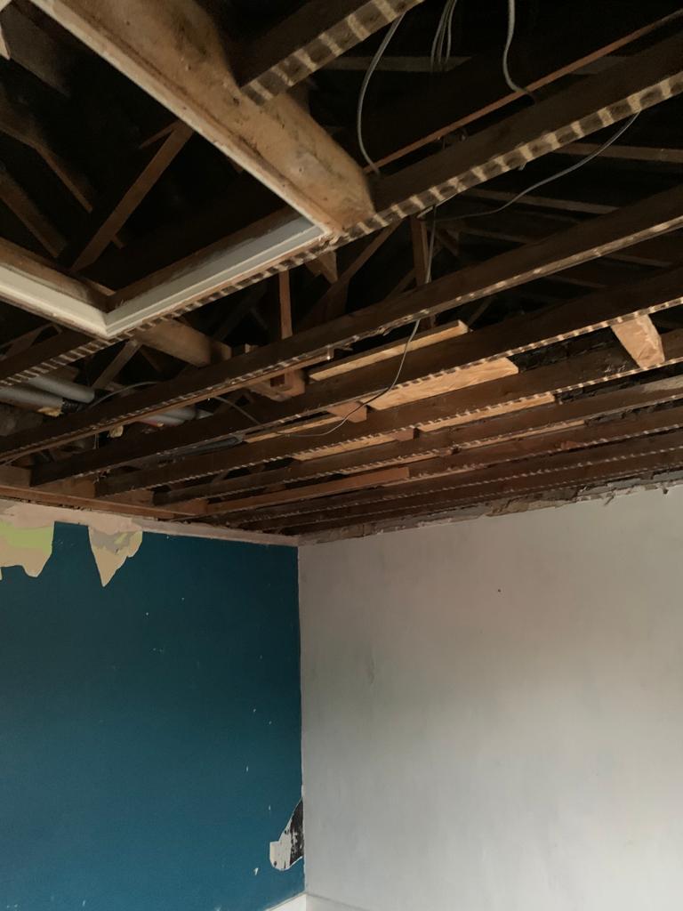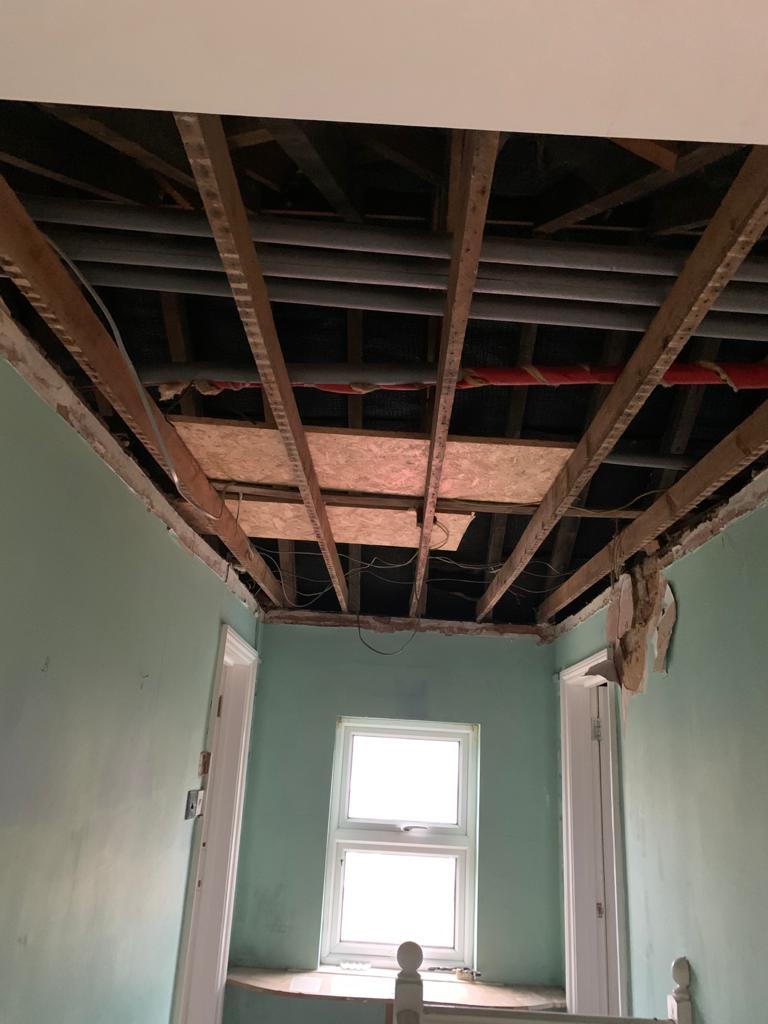 This week we have been called in to strip out a property in Great Cornard after a water tank burst in the loft, causing extensive damage. We will need to remove ceilings, make all the electrics safe, remove all the wet plaster, skirting boards and affected doors and flooring, and allow everything to dry out. Pictures below show the extent of the damage, and we will update you as we progress with repairs.