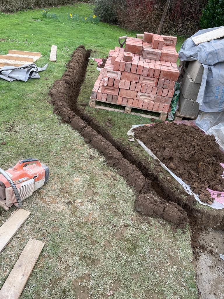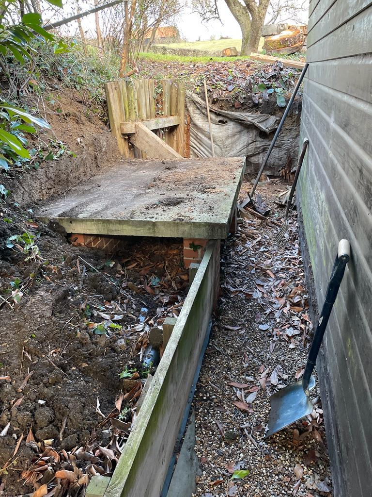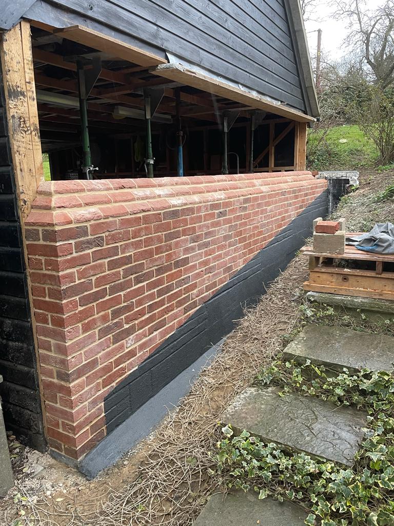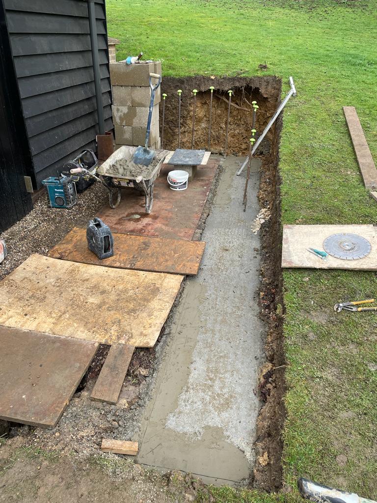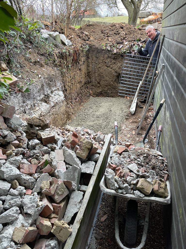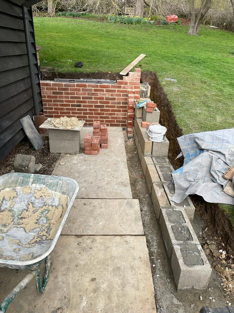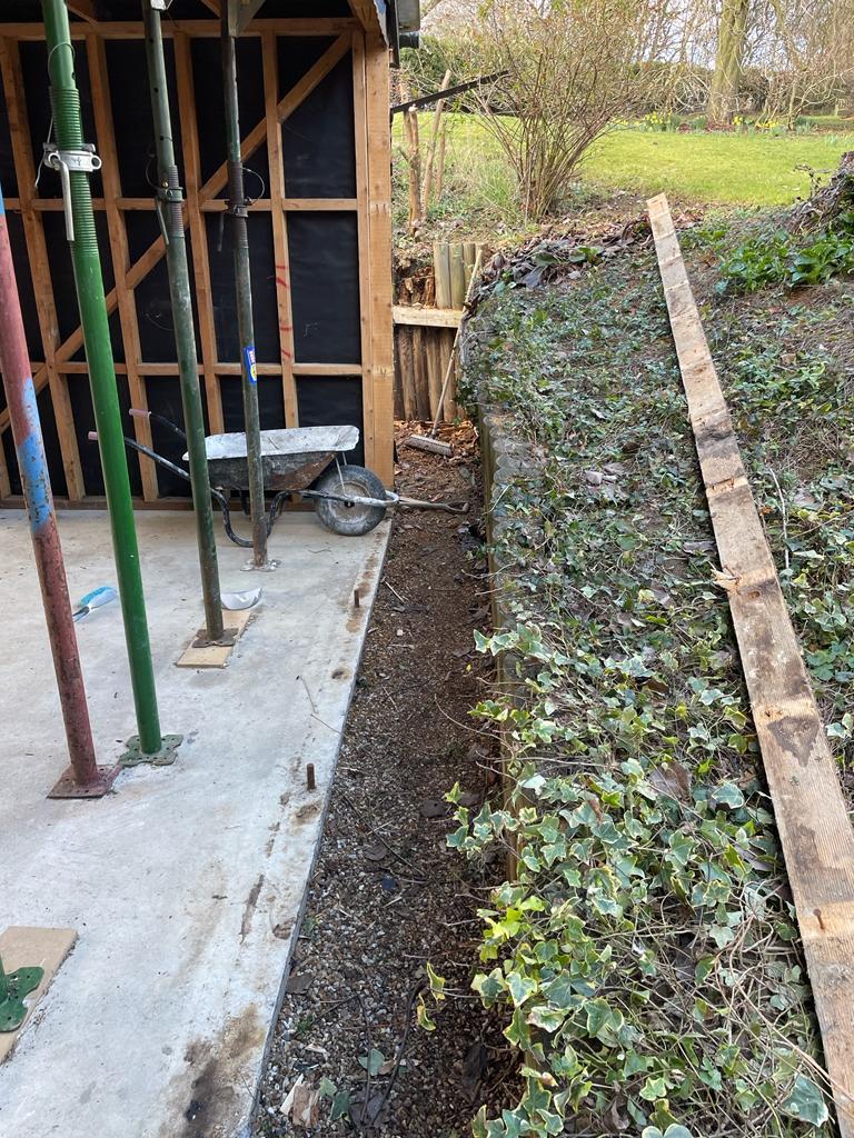 Wehave started a new job in Nayland this week, retaining a garage and outbuilding that have been affected by movement. We are installing retaining walls, gabions, block work and metal rods. Gabions are baskets/containers filled with stones or other material that are often used to stop or slow down run-off of water, ot to stabolize slopes that have seepage problems. They can also be used purely for aesthetic purposes, or to help retain walls and embankments. Sometimes they are used as noise barriers too.