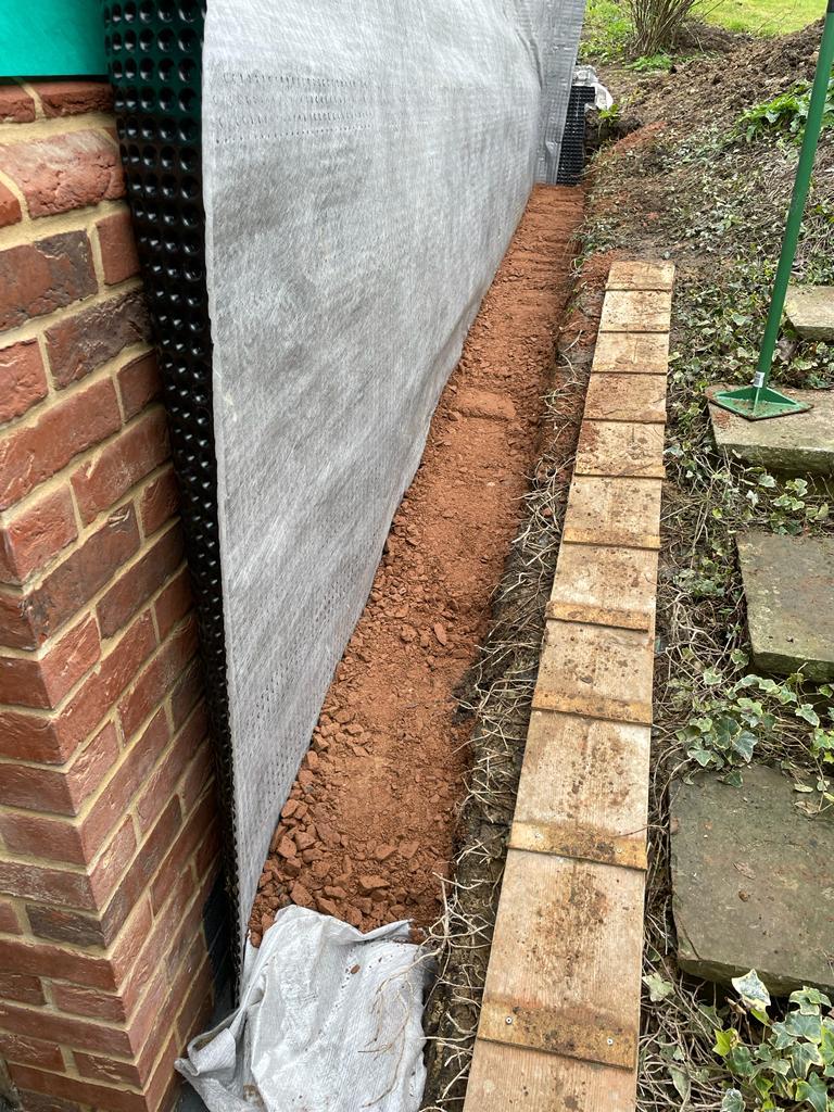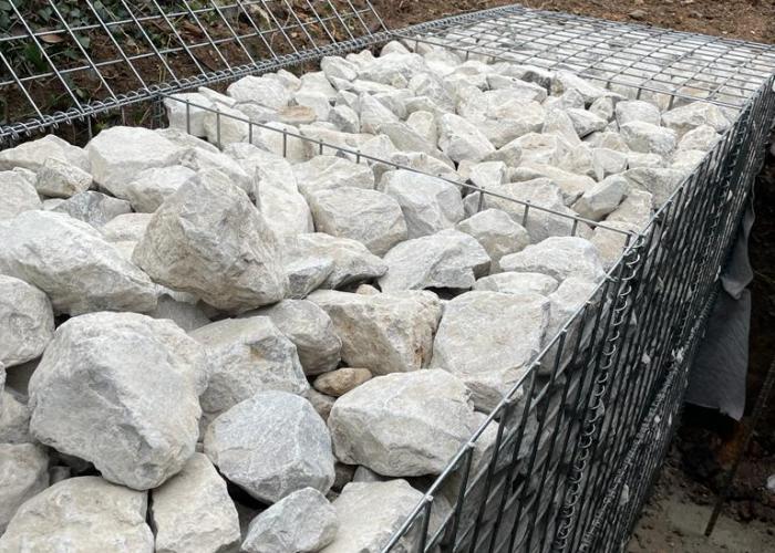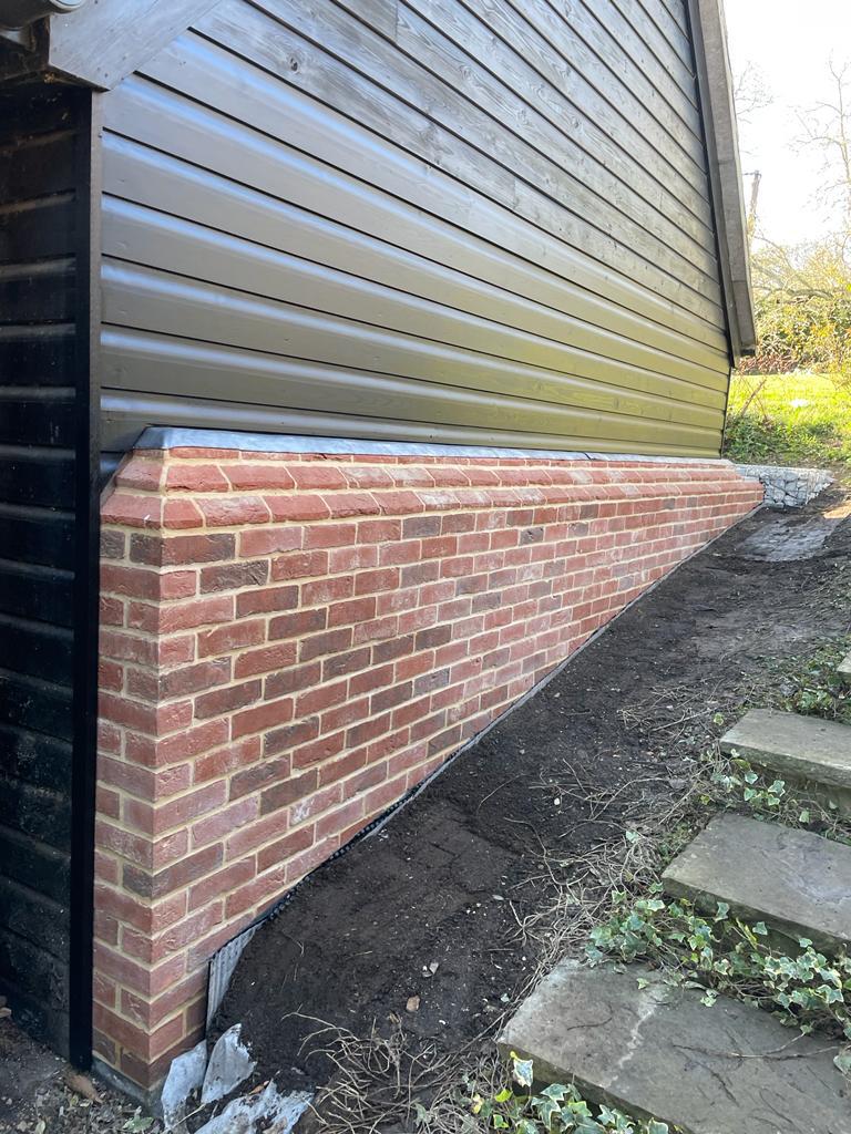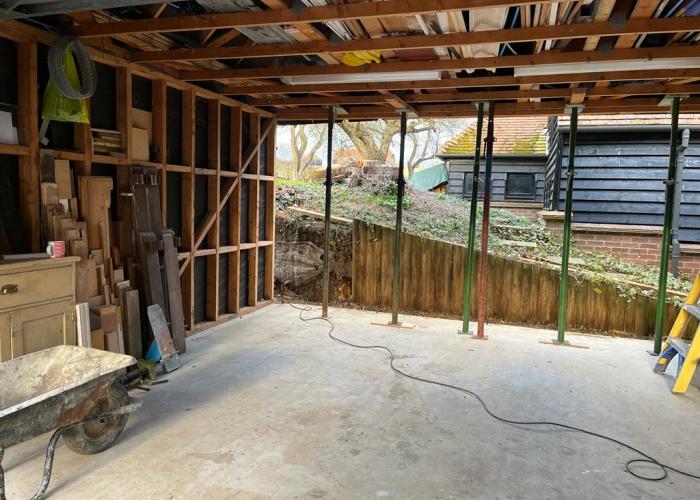Retaining a garage and outbuilding in Nayland that were affected by movement. We installed retaining walls, gabions, block work and metal rods.