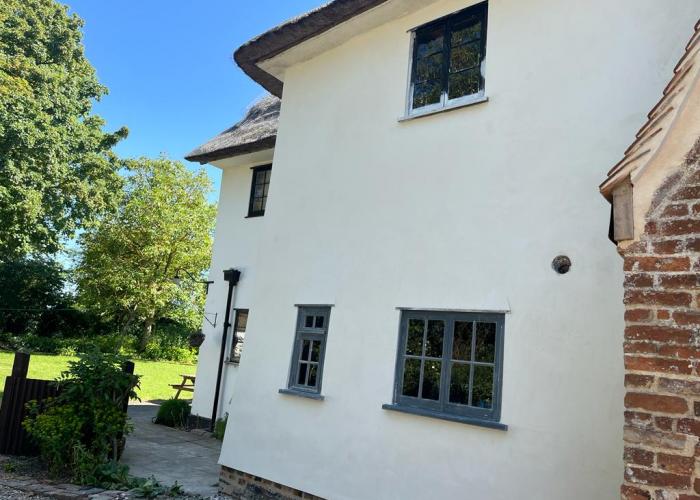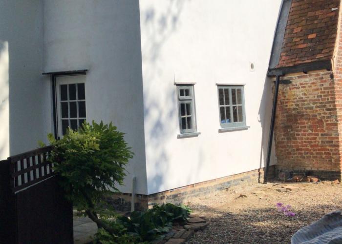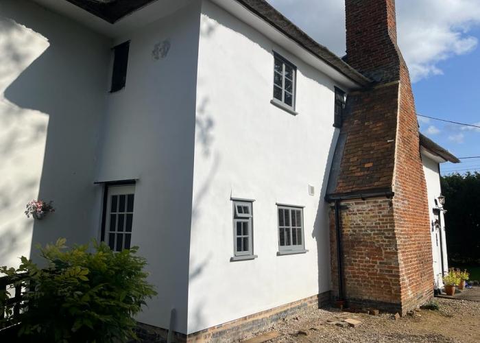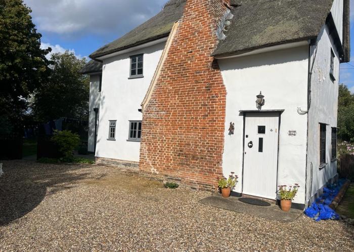 This grade 2 listed building was restored to it's former glory following serious structural problems caused by previous owners having the walls rendered with concrete. We had to strip it back and then preserve the timber frame structure and wattle and daub. This involved inserting new sole plates and reinforcing the timber frame in a bespoke steel brace constructed by a local engineering firm. The customer was very happy with the result, and we even managed to preserve the jesters!