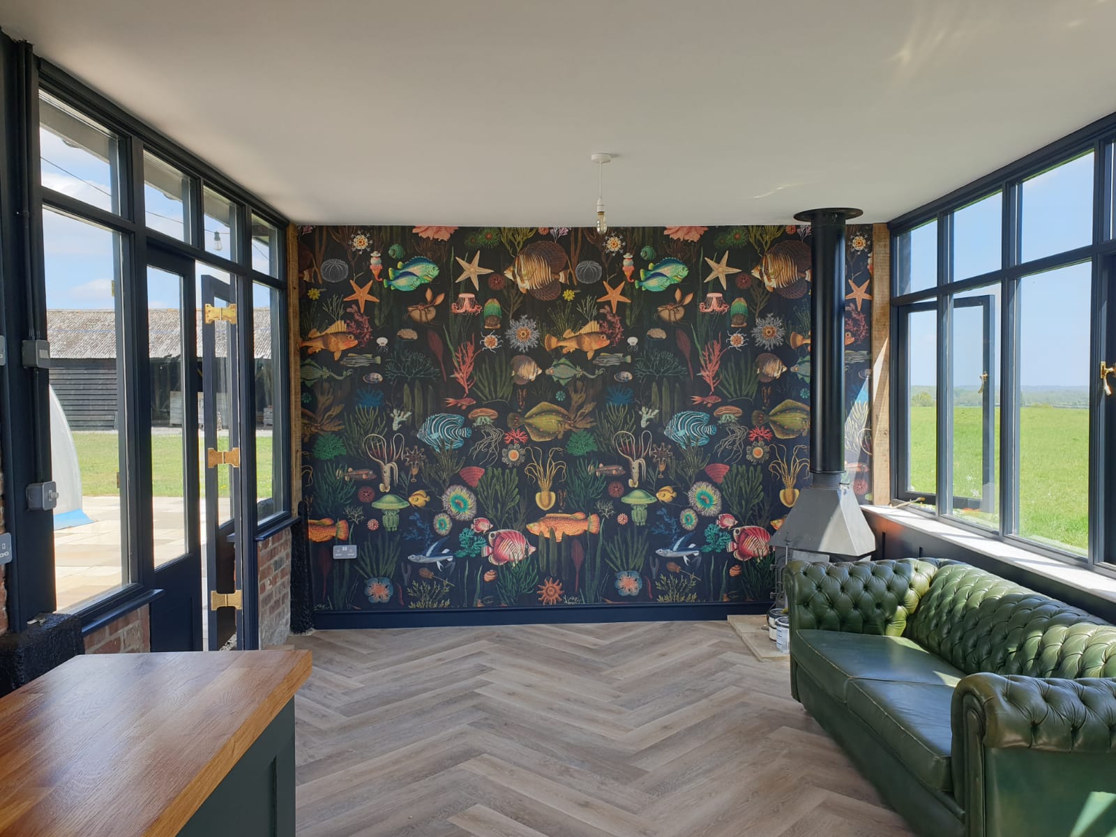 We built a pub in the garden of a property in Nayland. We've had a fantastic response to pictures shared on our social media, and lots of interest in the lovely wallpaper that the clients chose!